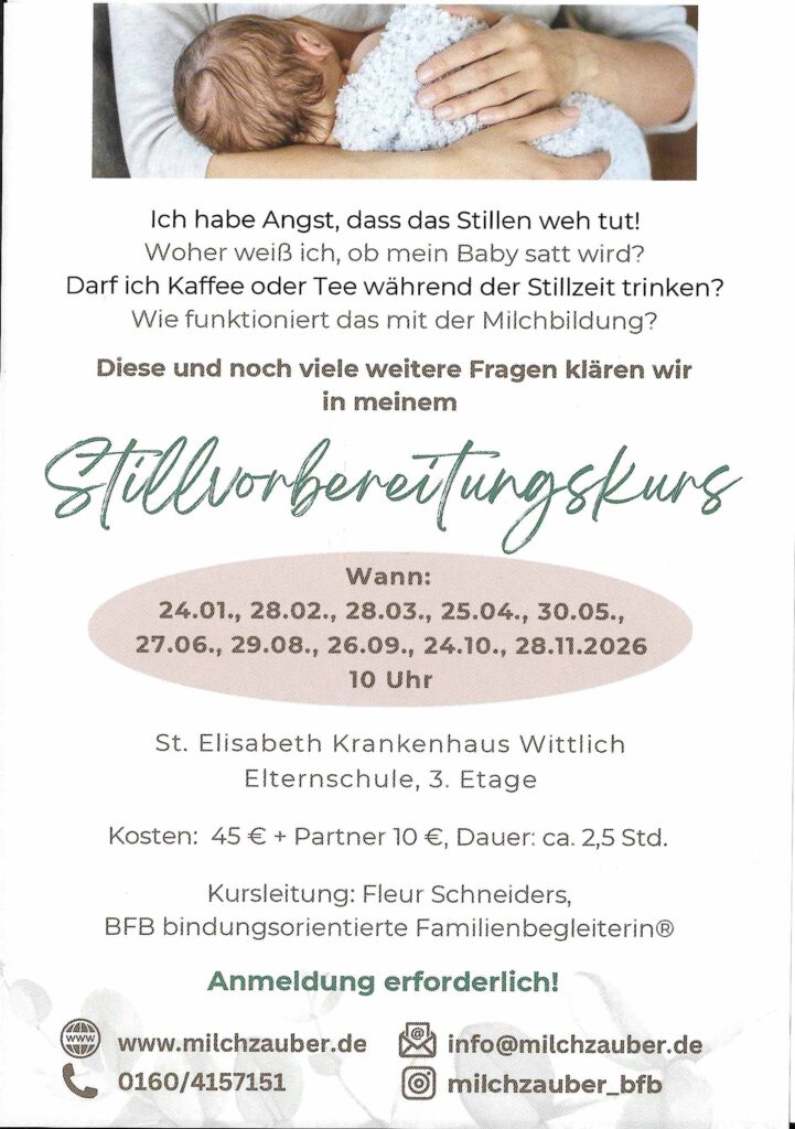 Elternschule Hier finden Sie unsere Angebote für Eltern und Geschwister BABY- & KLEINKINDSCHLAF VERSTEHEN BEREIT FÜR DIE BEIKOST? BABYMASSAGE STILLVORBEREITUNGSKURS GESCHWISTERKURS BABY- & KLEINKINDSCHLAF VERSTEHEN Hier anmelden (Externe Webseite) STILLVORBEREITUNG Hier anmelden (Externe Webseite) BEREIT FÜR DIE BEIKOST? Hier anmelden (Externe Webseite) GESCHWISTERKURS Hier anmelden (Externe Webseite) BABYMASSAGE Hier anmelden (Externe Webseite) FRAGEN Sie suchen Kurse für Schwangere? Schauen Sie gerne auch in unserem Kursangebot nach! Zu den Kursen